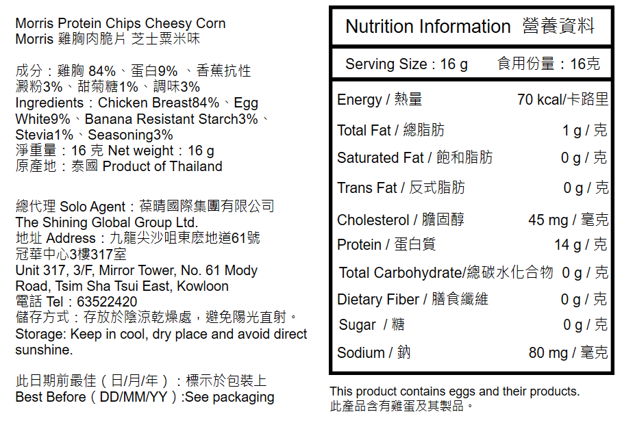 MORRIS - 零碳水雞胸肉脆片 芝士粟米味