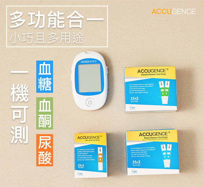 This test strip is only suitable for ACCUGENCE 3 in 1 blood glucose /blood ketone/ uric acid meter