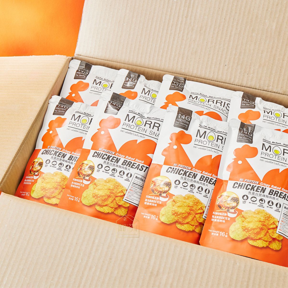 MORRIS - 原箱優惠 - 高蛋白雞胸肉脆片零食 燒烤味 20包裝 - 無麩質清真食品/生酮飲食/低碳水化合物/0糖低脂肪非油炸薯片/低卡路里0糖零食 即食雞胸薯片