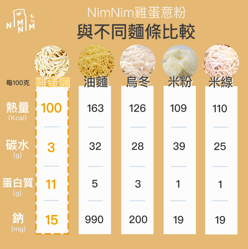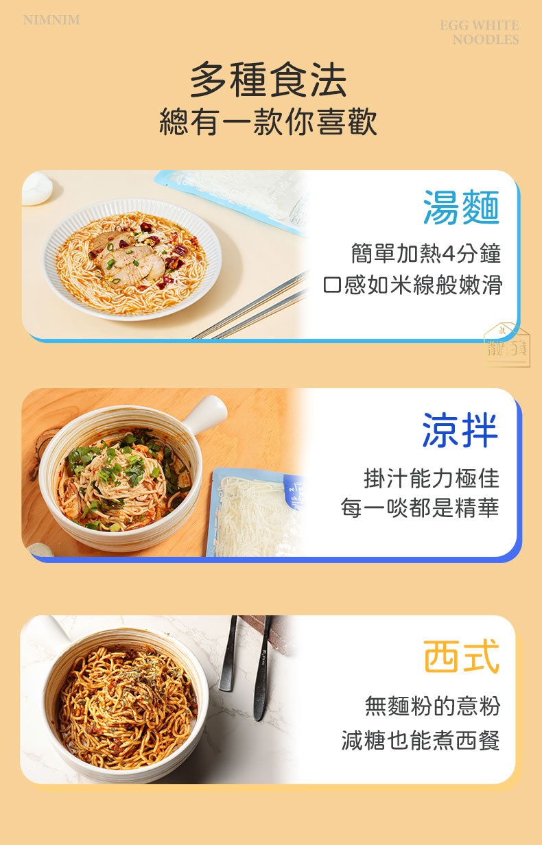雞蛋意粉每包有11克蛋白質,3克淨碳水,100卡路里,低脂肪