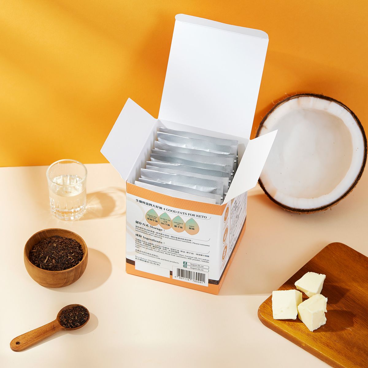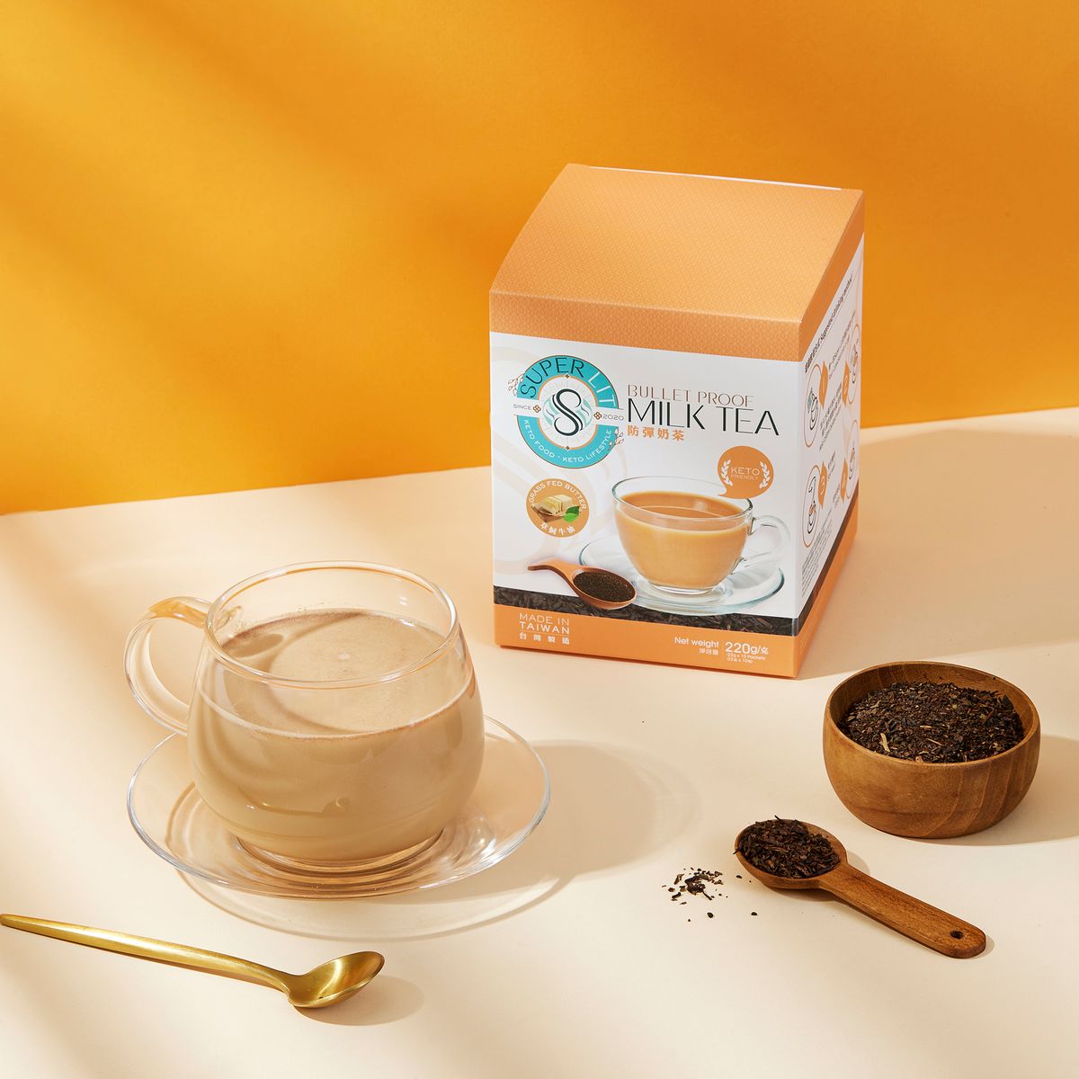 SUPER LIT - 原箱優惠 - 即沖防彈奶茶(瘦身代餐速溶盒裝咖啡粉) 10盒裝 送甜菊糖蒟蒻珍珠/台式魔芋珍珠奶茶10小袋- 生酮飲食低卡路里飲品減肥代餐